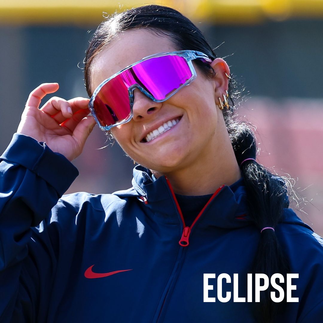 Our glasses include a primary lens, a night lens, and a polarized lens so you're ready for any game day, whether it's cloudy, extra bright, or low-light.