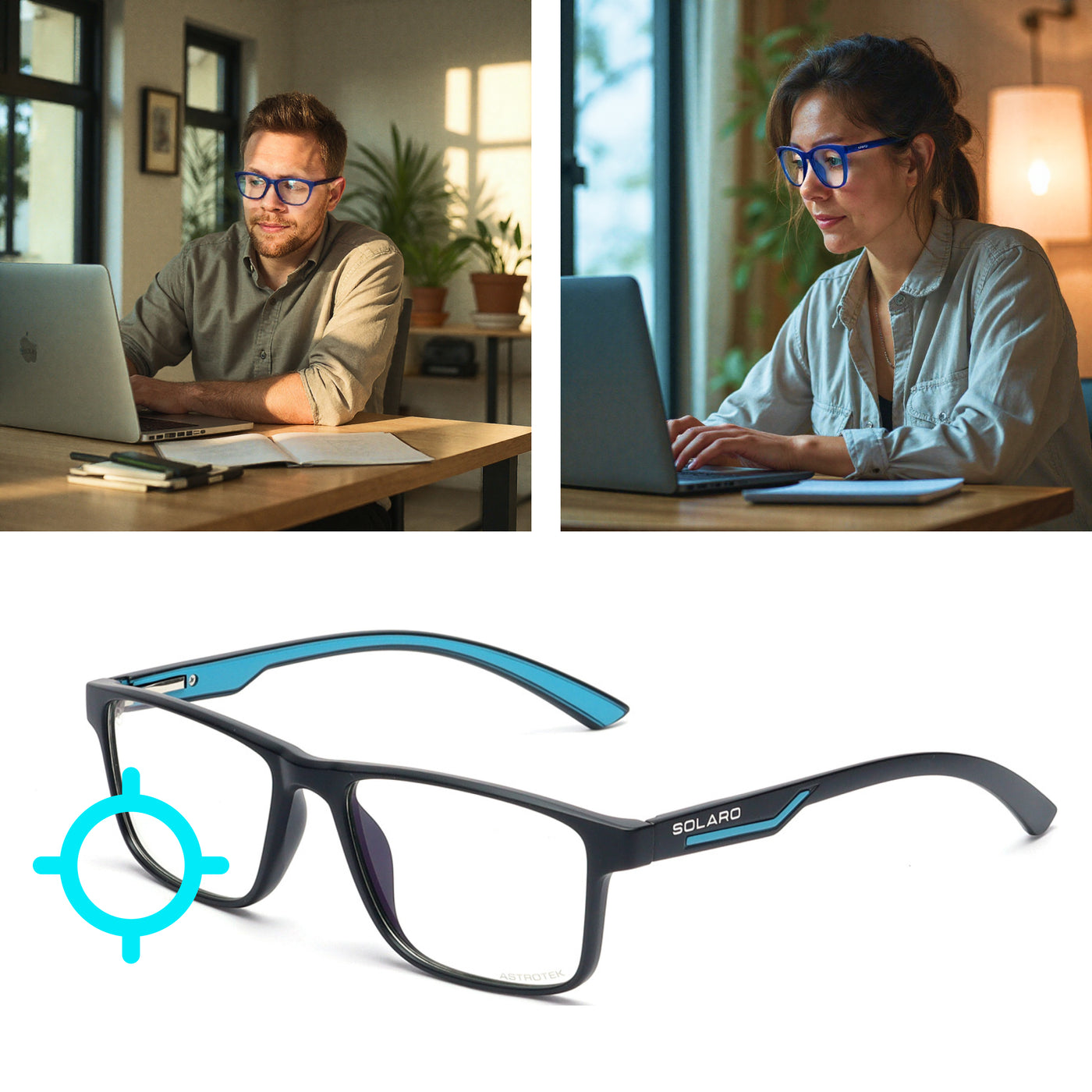 Long hours on screens can lead to headaches, blurred vision, and fatigue. Solaro's blue light glasses filter out harmful blue light, letting you work at peak performance without the strain.